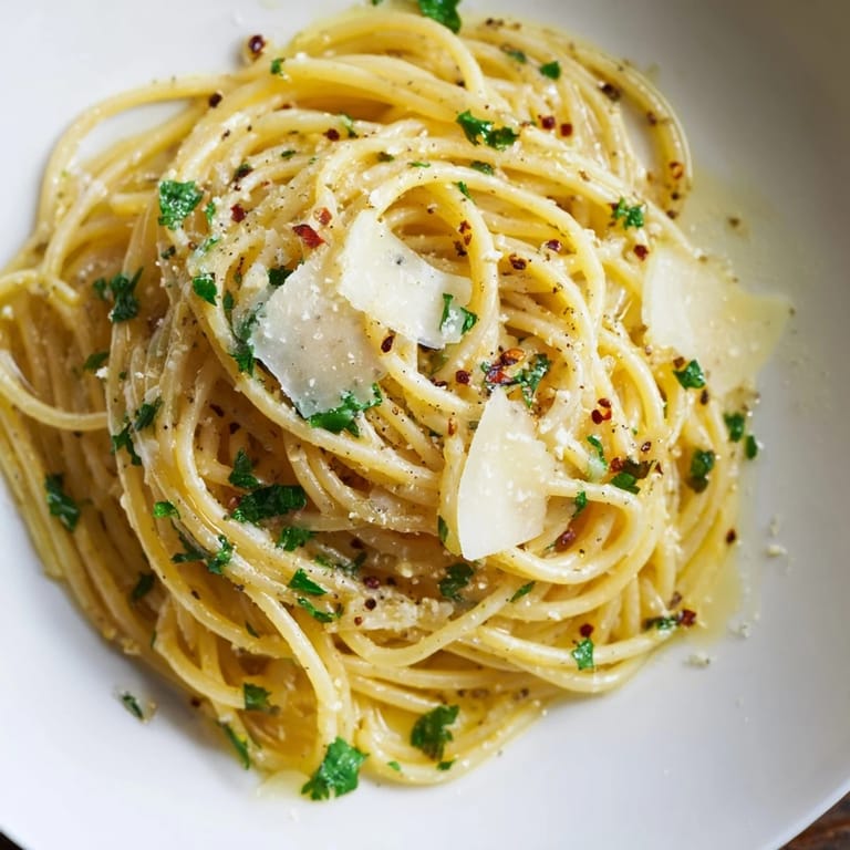 Save to Pinterest One weeknight I stood in my kitchen with almost nothing in the pantry—just a box of spaghetti, garlic, olive oil, and half a container of chili flakes—and somehow made the most satisfying dinner in minutes. That dish was aglio e olio, and it taught me that the simplest ingredients, treated with respect and patience, need no apologies. Now it's my go-to when I want something honest and filling without fussing, and I've made it so many times the motions feel like muscle memory.