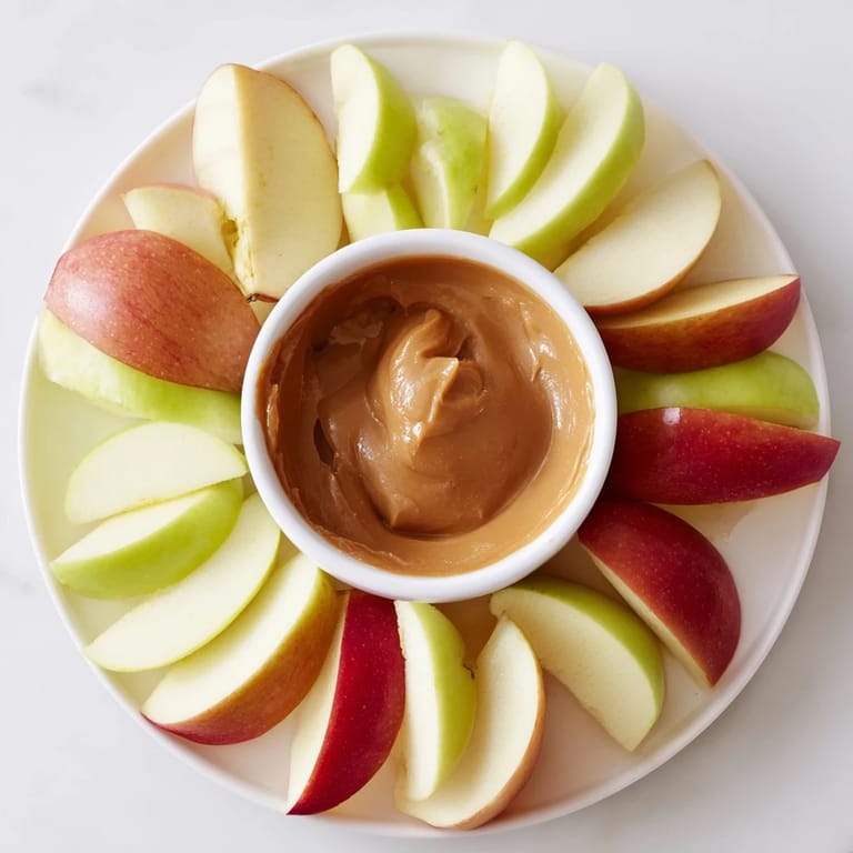 - Slice the apples into thin wedges and toss with lemon juice to prevent browning. Arrange the slices in a circular pattern on a serving platter, leaving space in the center for the dip.
