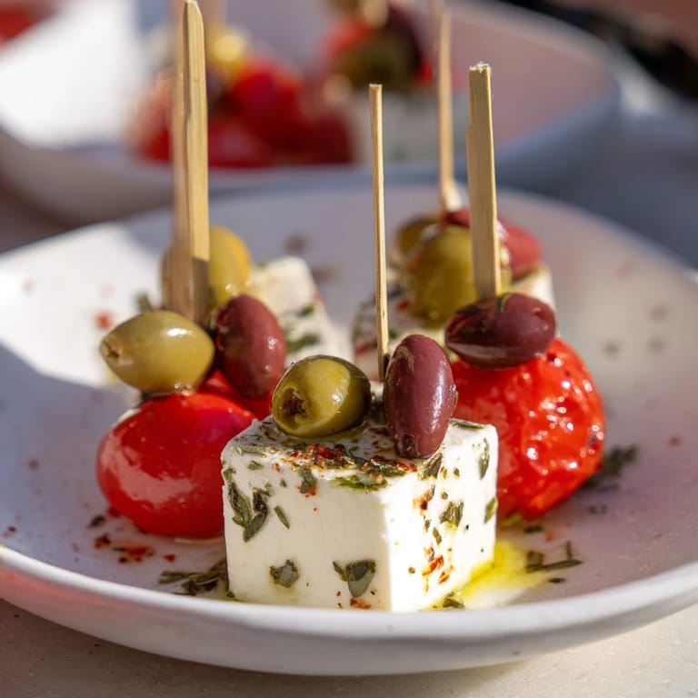Save to Pinterest A festive and vibrant appetizer featuring tangy feta, briny olives, and juicy cherry tomatoes, perfect for holiday gatherings and casual celebrations.