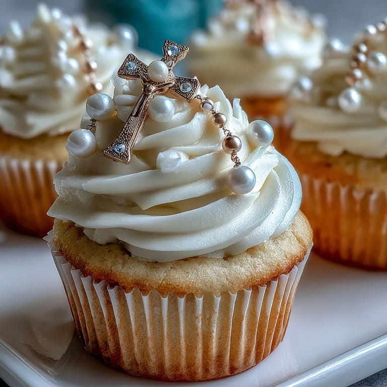 I'll never forget the moment I placed the first batch on the dessert table and watched a seven-year-old notice the tiny cross on top before anything else. Her eyes went wide, and she whispered it to her friend like she'd discovered treasure. That's when I realized these cupcakes weren't just dessert—they were little edible symbols of something meaningful, and baking them suddenly felt like participating in something bigger than just making sweets.