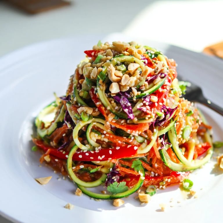 The beauty of this recipe is how easily it adapts to whatever you have on hand or what is in season. I have used yellow squash when zucchini felt too ordinary and daikon radish for a peppery kick that wakes up your palate. Sometimes I add edamame for protein or swap the peanuts for cashews when my pantry dictates.
