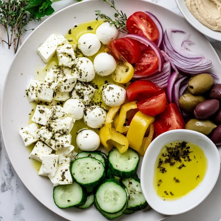I still remember hosting a small dinner party on my first balcony with actual sunlight. I was nervous about the cooking, so I built an entire meal around this platter as the centerpiece. By the time everyone arrived, they were already gathered around it, plucking olives and cucumber slices before we'd even sat down. It became the whole evening—everything else was just sides to the conversation happening over feta and wine.