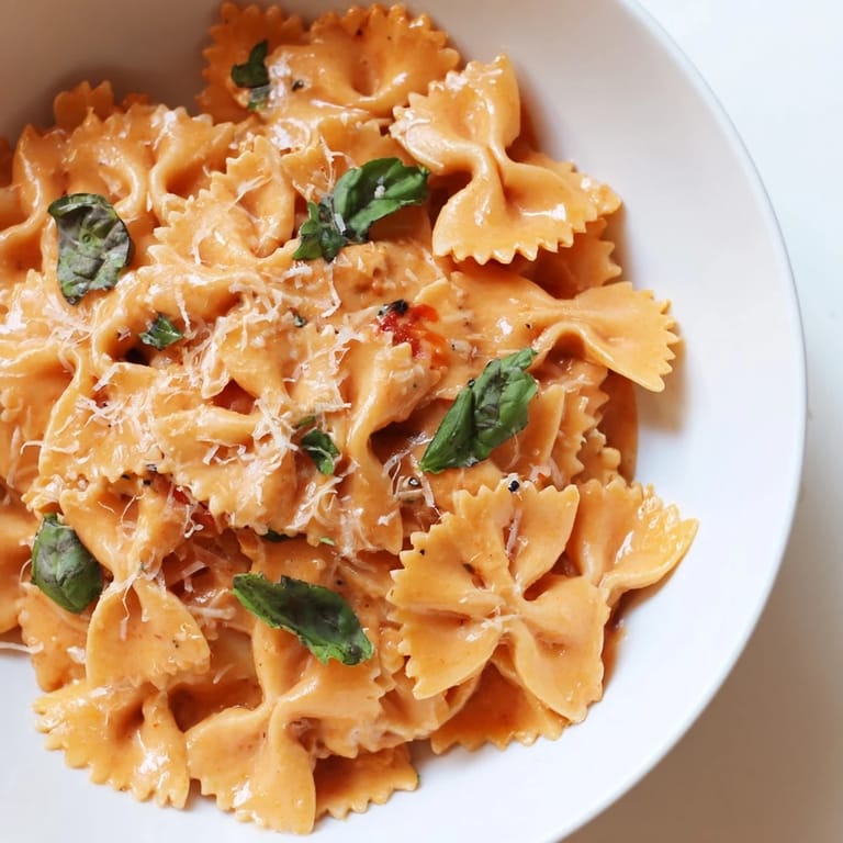 - Bring a big pot of water to a rolling boil and salt it like the sea, then cook the bowtie pasta until it still has a little bite. Save a mugful of that starchy pasta water before you drain, it is magic for loosening the sauce later.