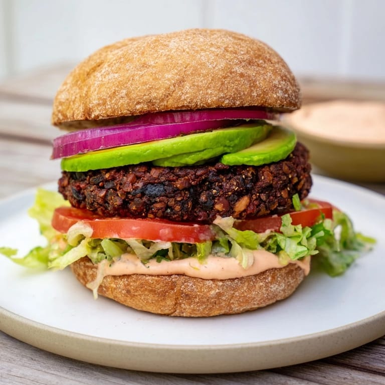 Save to Pinterest A vibrant, satisfying vegetarian burger bursting with zesty flavors, creamy avocado, and crisp fresh toppings perfect for a quick, wholesome weeknight dinner.
